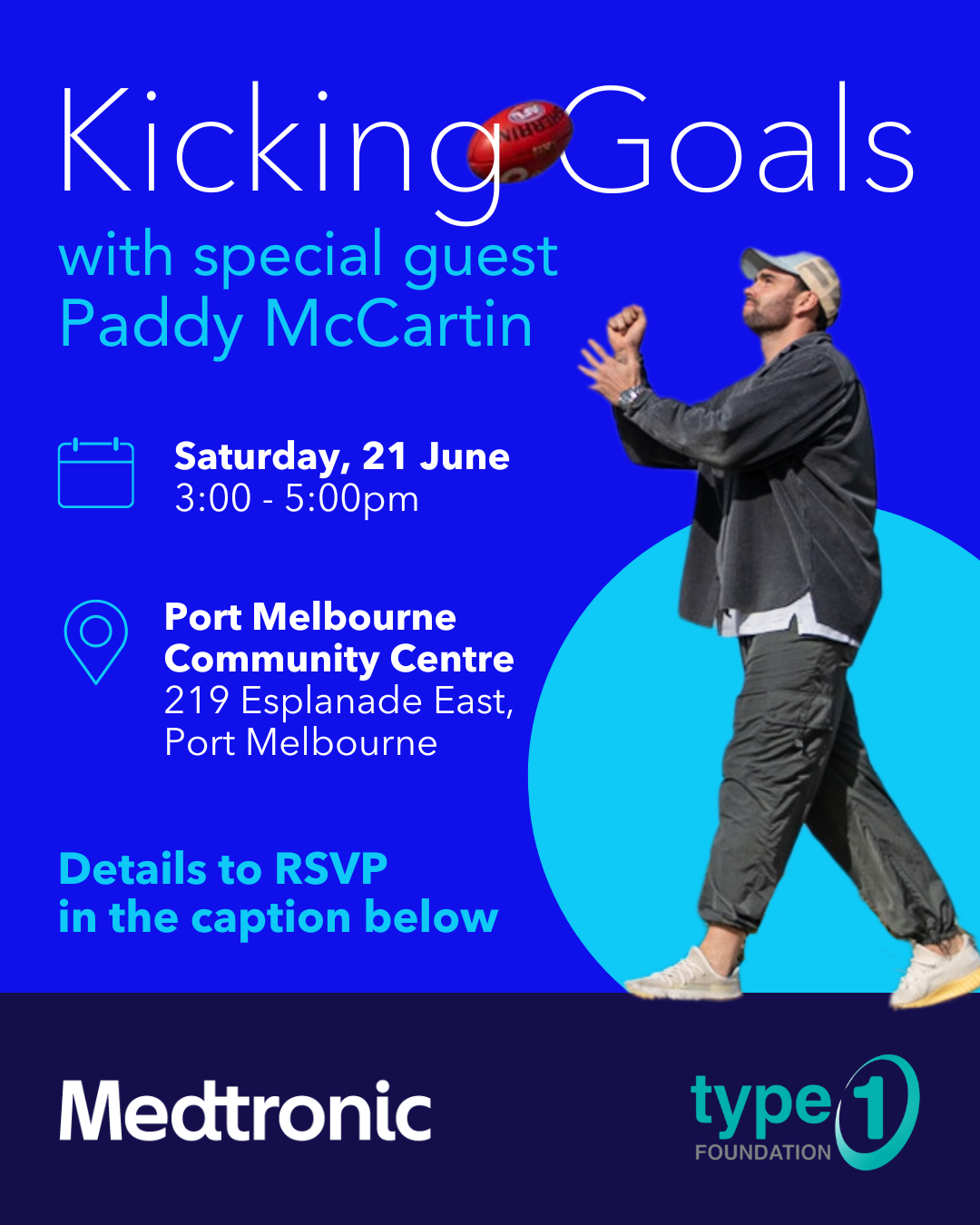 Join Medtronic Diabetes Aus for an unforgettable Kicking Goals event with AFL star Paddy McCartin! 🏉