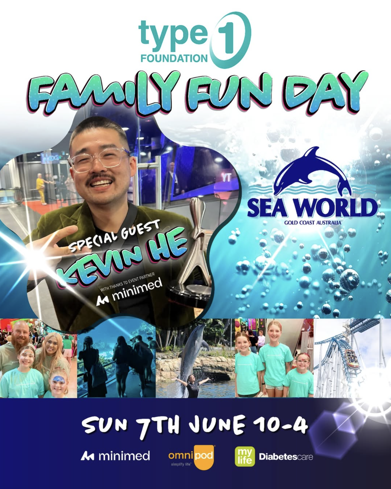 This special event is for families and individuals living with Type 1 Diabetes, offering a chance to connect, and enjoy the magic of Sea World together with our team and sponsors Minimed Australia, Omnipod and Mylife Diabetes Care.